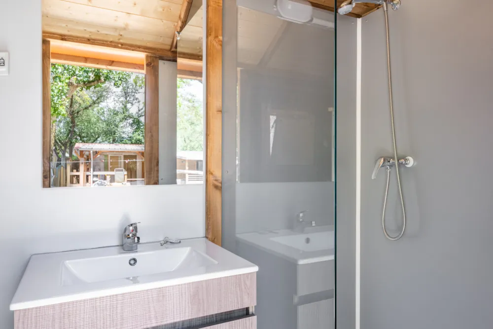 La praticien des sanitaires, leur propreté, l'emplacement sous les arbres.